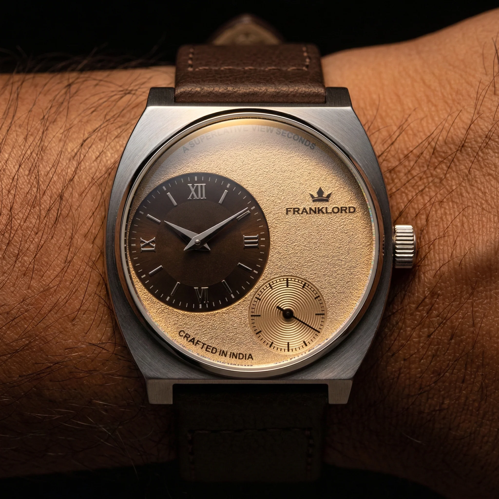 Franklord Eccentrica | Asymmetric Small Second Watch - The Champagne Dune