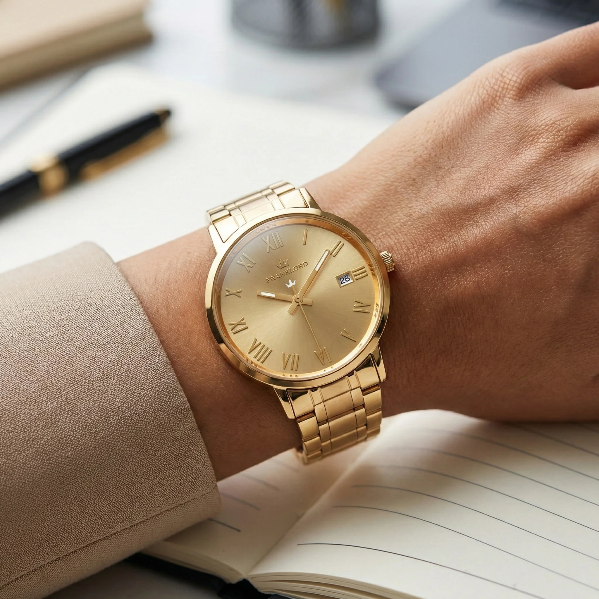 The Golden Aura of Abundance Step into a world of limitless possibilities with the Franklord Ladies Maha Vastu | Gold in Gold. In Vastu Shastra, Gold represents the purity of the Sun and the benevolence of Jupiter (Guru). It is the ultimate symbol of wealth, wisdom, and divine energy. Wearing this timepiece is an affirmation of your own inner radiance and prosperity.