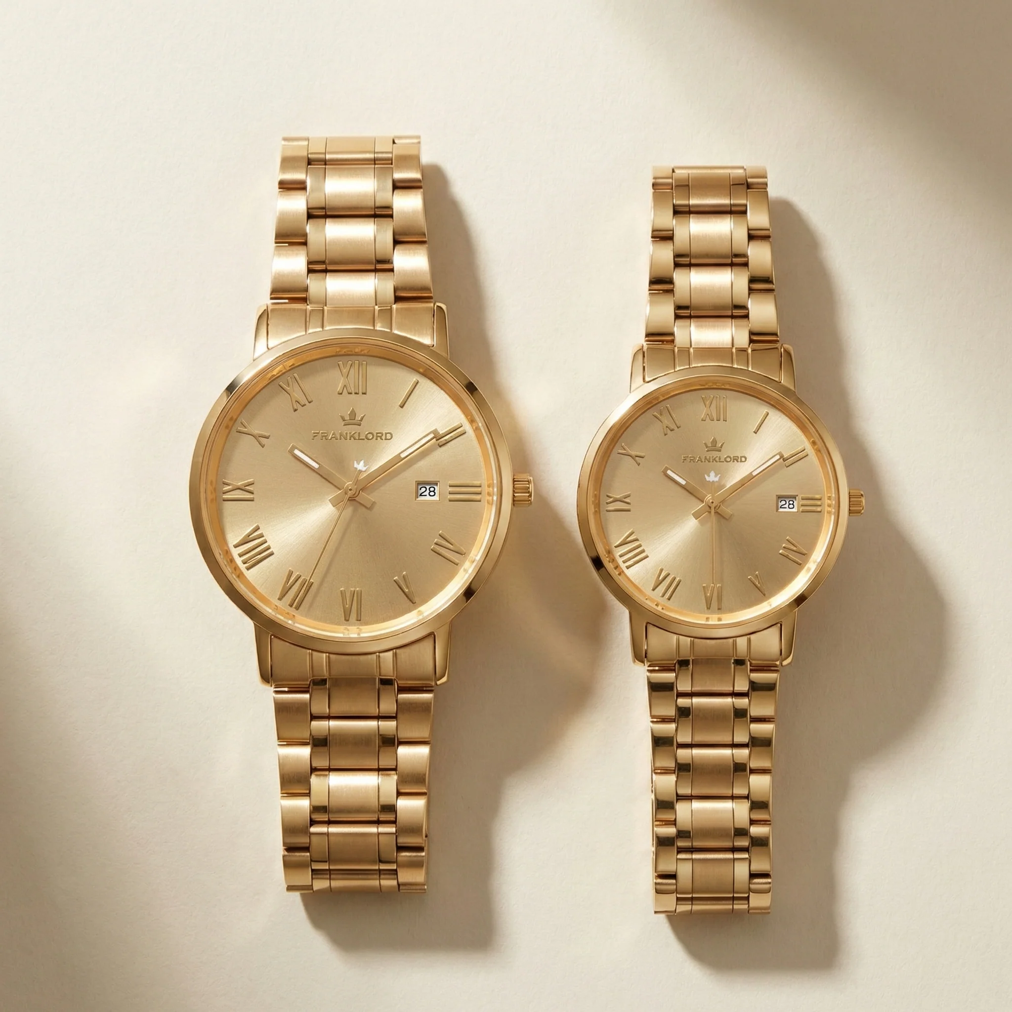 Designed for the Power Couple Each watch in this set is a masterpiece of monochromatic luxury. The champagne gold sunburst dial blends seamlessly with the high-quality IPG Gold plated case and bracelet, creating a jewelry-like finish. Whether for a wedding gift, a milestone anniversary, or to mark a significant achievement, this set is a bold declaration of your "Midas Touch."