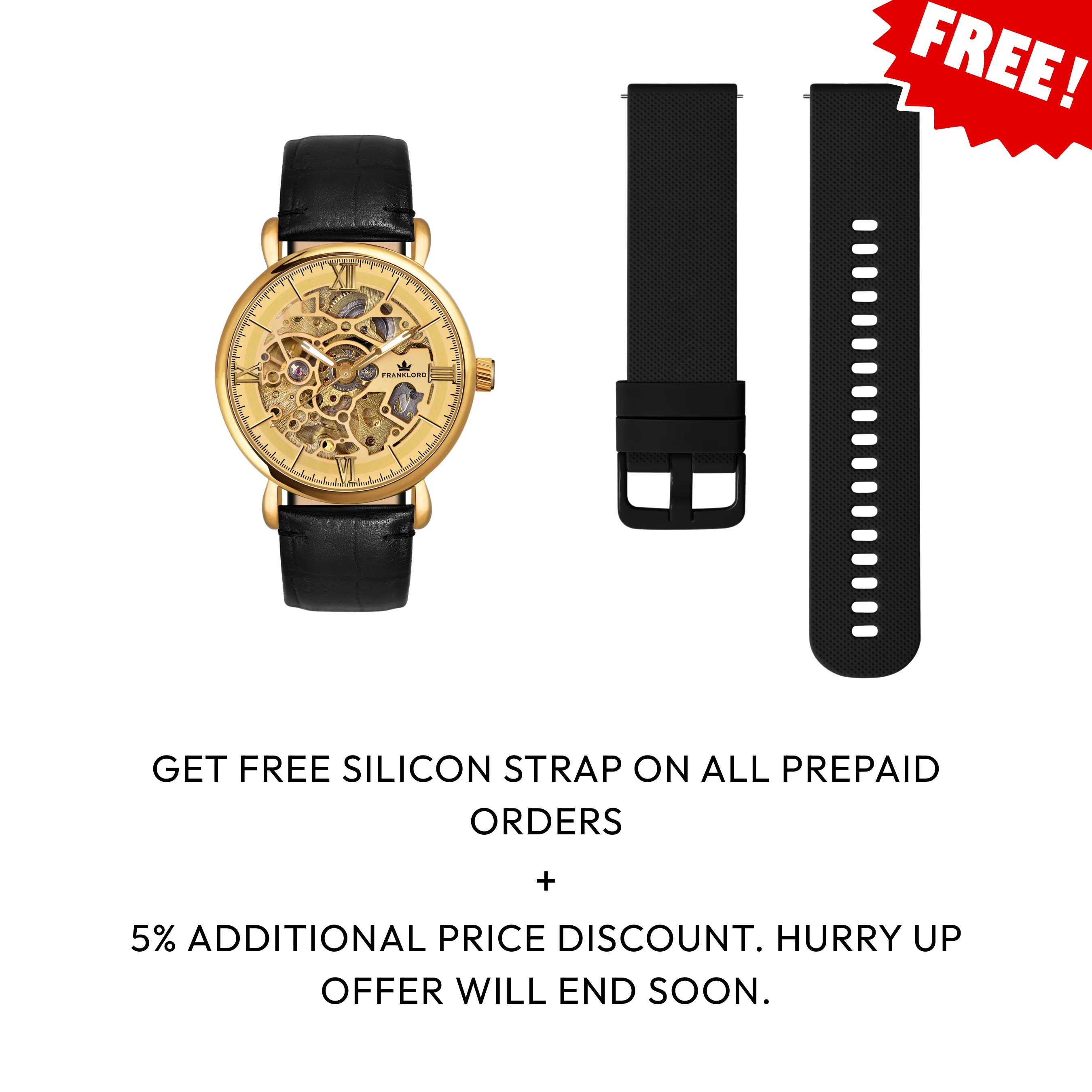 Franklord Mechanis – Gold Valiant | Luxury Skeleton Dial Automatic Watch with Leather Strap