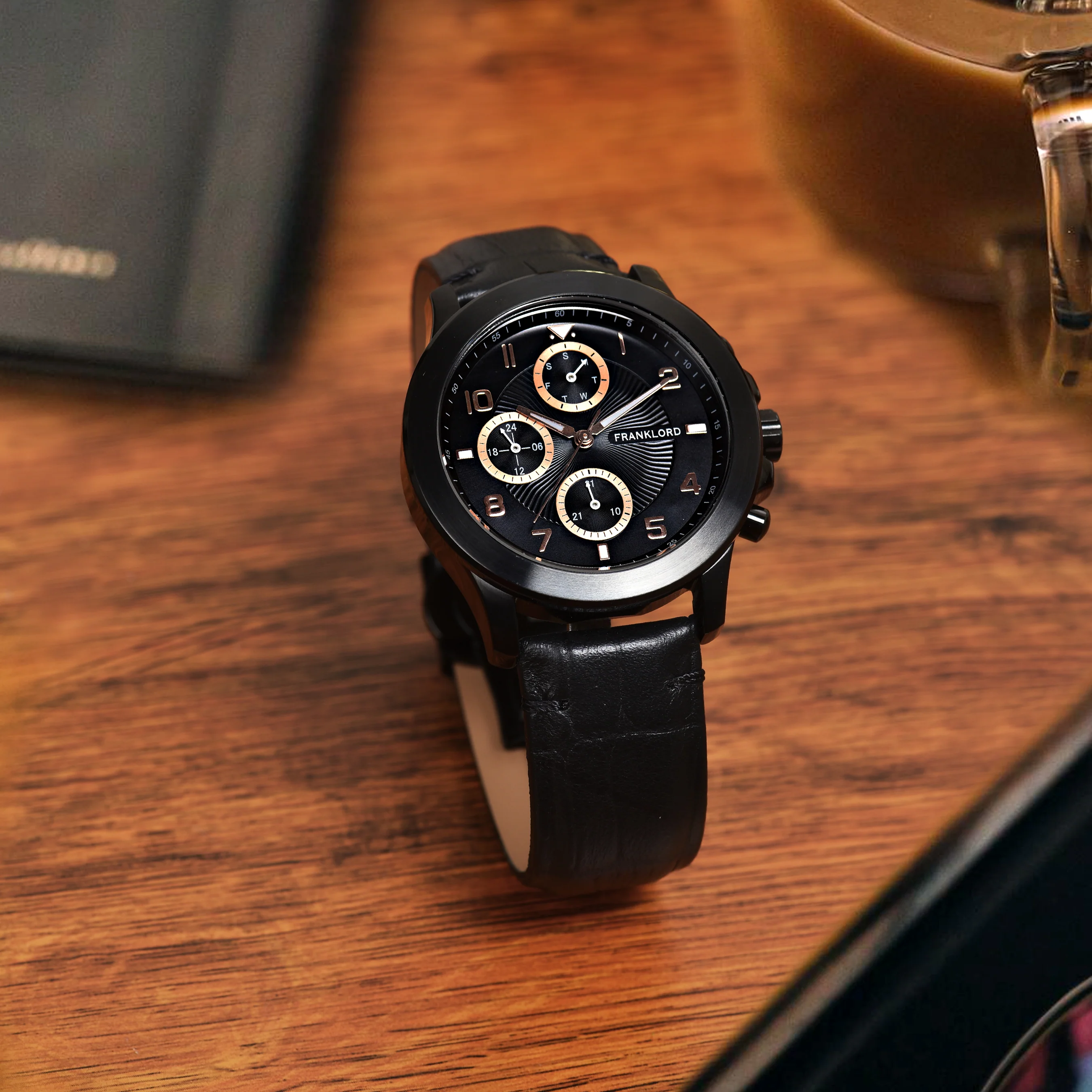 Elevate your style with bold sophistication. Order your Timekeeper Series - Black Shadow Chronograph Watch today and make every moment count.